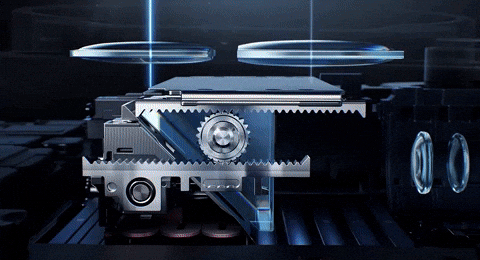 Es decir, cuando se cambia entre los zoom ópticos 3.7x y 9.4x predefinidos en la interfaz de cámara, el prisma se mueve para dirigir la luz, desde el lente elegido, al sensor que procesa la imagen. En distancias focales fuera de 83 mm y 212 mm, los equivalentes a los lentes, el zoom es digital.