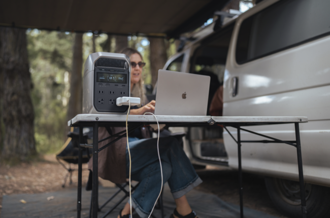 El dispositivo cuenta con un puerto USB-C de hasta 100 W, dos puertos USB-A de 24 W, más tres enchufes tradicionales CA con un máximo de 600 W (1,200 W en total). La marca promete que puede suministrar energía a tu router de internet por hasta 35 horas o hasta 26 minutos de uso en tu computadora para guardar y apagar de manera segura.