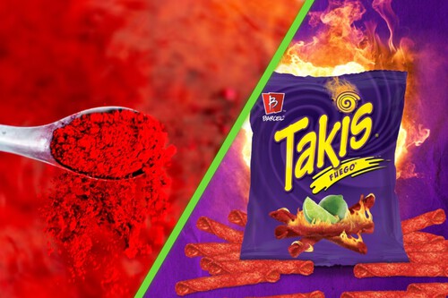 Entre los alimentos chatarra analizados, destacan los Takis Fuego, de Barcel, cuya versión europea utiliza cúrcuma y paprika para darle el color rojo. En México, PepsiCo eligió colorante Rojo 3, que se ha relacionado con algunos tipos de cáncer y cuyo uso está prohibido en Estados Unidos y varios países de Europa.