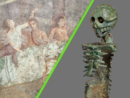 Algunos de estos obsequios eran los larvae convivales o "fantasmas de banquete". Se trataba de pequeños esqueletos con articulaciones móviles que los dueños de las casas daban a los asistentes al festín. El objetivo no solo era consentirlos con una exquisita pieza decorativa (como los "recuerditos" en las fiestas de hoy en día), sino recordarles que todos, en algún momento, vamos a morir.