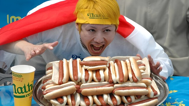 Takeru Kobrayashi es ícono japonés de los concursos de comida. Alcanzó la fama en el años 2000 tras aparecer en el programa de televisión TV Champions, donde devoró 16 tazones de ramen en una hora. Sin embargo, su popularidad se dispararía en 2001, cuando rompió un récord mundial al comer 50 hot-dogs en solo 12 minutos.