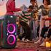 Esta bocina es una de las mejores opciones que puedes encontrar para darle vida a tus fiestas. Para empezar, cuenta con woofers duales de rango completo, acompañados de dos tweeters para escuchar graves profundos incluso a volúmenes más bajos. Aquí la experiencia de sonido es del nivel más alto. Pero además, con esta bocina puedes poner el ambiente, pues cuenta con anillos luminosos RGB que pueden cambiar de color con diversos modos; también cuenta con una pantalla pixel que se puede personalizar con textos y efectos visuales.
