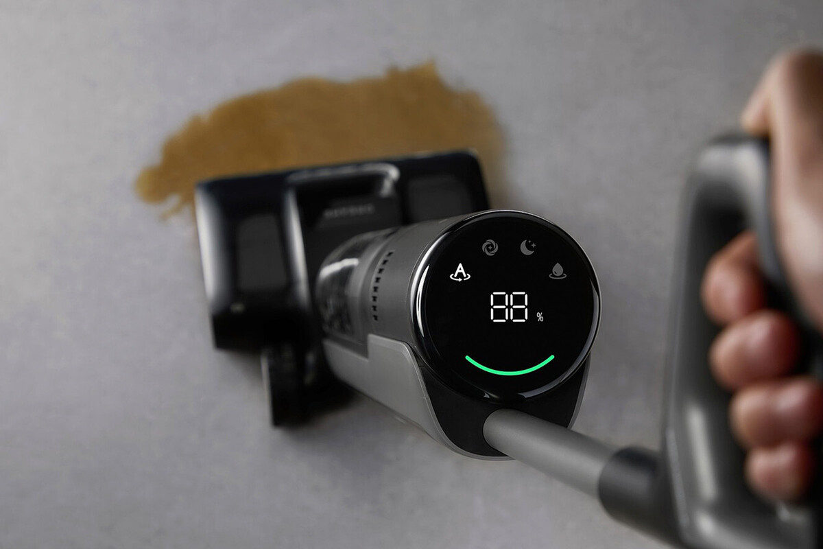 Sus medidas son de 381 x 350 x 800 milímetros y pesa apenas 5.1 Kg, lo que la vuelve bastante manejable. En cuanto a autonomía, cuenta con seis batería de 4,000 mAh que prometen hasta 50 minutos de limpieza continua, nada mal para un producto de este tipo.