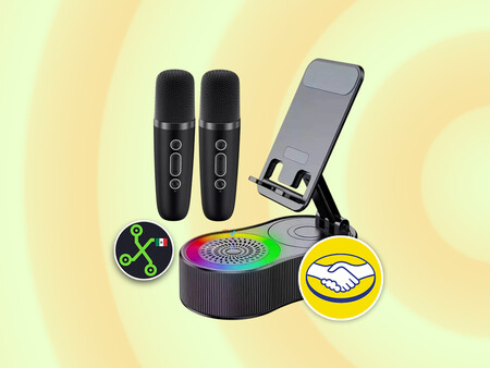 Otro punto a destacar es que el paquete incorpora dos micrófonos inalámbricos, lo que lo convierte en una alternativa práctica para karaoke en espacios pequeños o cerrados. El altavoz dispone de una potencia de 5W y su batería recargable de 2,000 mAh también permite cargar dispositivos, funcionando así como power bank.