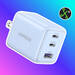 Este cargador incorpora dos puertos USB-C y un USB-A para conectar hasta tres dispositivos al mismo tiempo, aprovechando al máximo cada enchufe de tu casa. Además, su potencia de 30 W permite recargas rápidas, por ejemplo, puede llevar un iPhone 16 del 0% al 60% en sólo 30 minutos.