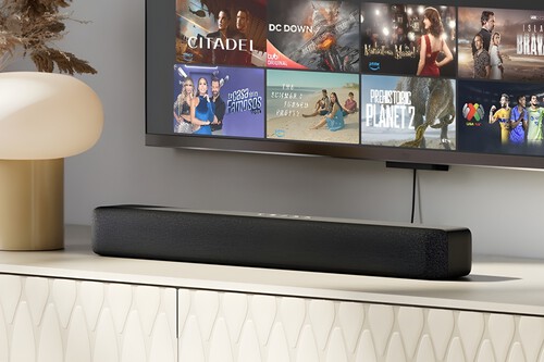 Además, su diseño compacto permite acomodarla sin estorbar, y su configuración es tan simple como conectar el cable HDMI incluido al puerto eARC/ARC de la televisión. Además, es compatible con Bluetooth para reproducir música desde el celular, y funciona de manera integrada con dispositivos Fire TV, lo que facilita controlar todo con un solo control remoto.