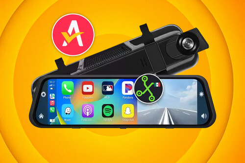 En dimensiones, estamos ante un espejo frontal de 10 pulgadas que permite usarlo como retrovisor tradicional cuando no está activo. En su interior se integra una pantalla táctil IPS, mientras que en la parte trasera incorpora una cámara frontal que funciona como dashcam y puede monitorearse directamente desde la pantalla del espejo.