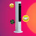 En términos de diseño, presenta una propuesta similar a la de un ventilador de torre convencional, con una pantalla LED análoga que indica el nivel de potencia y el modo de funcionamiento. Los controles físicos se encuentran en la parte superior, aunque también incluye un control remoto para operarlo a distancia.