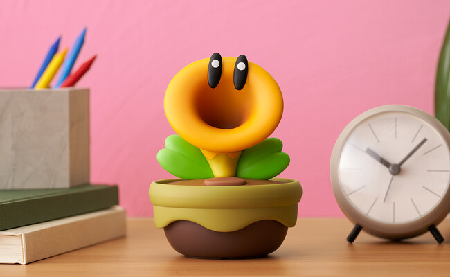Esta decoración coleccionable está inspirada en las flores que aparecen en Super Mario Bros Wonder, el último juego de la línea principal del fontanero. Si jugaste este título, sabrás que la característica principal de estos personajes es que hablan “hasta por los codos”. Pues bien, con esta figura sentirás que prácticamente lo sacaste del juego para Nintendo Switch, pues te hablará al presionar un botón, y te dirá cientos de comentarios durante el día por su propia cuenta.