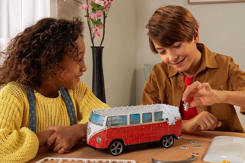 Este paquete nos trae un rompecabezas tridimensional del modelo Volkswagen T1, creado por Ravensburger, marca reconocida por su especialización en la elaboración de diversos modelos de rompecabezas. Cuenta con 162 piezas, y sus medidas son de aproximadamente 30 cm de largo.