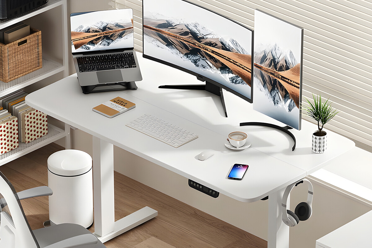 Lo que hace destacar a este modelo sobre otros escritorios es su generosa superficie de 1.6 metros, ideal para quienes usan setups de doble monitor o periféricos grandes. Su sistema de ajuste de altura con rueda es suave y silencioso, permitiéndote encontrar la posición exacta para tus codos y cuello. Al ser eléctrico, el cambio de altura se realiza prácticamente sin esfuerzo al pulsar un solo botón.
