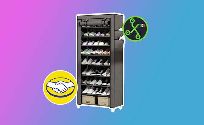 Este organizador puede servir como armario, repisa o zapatero. Es de fácil armado, y cuenta con nueve niveles con capacidad para 27 pares de zapatos. Sus dimensiones son de 1.6 metros de alto por 60 cm de ancho y 30 cm de profundidad; pesa solamente 2 kg, y también integra una cortina con compartimientos extra.