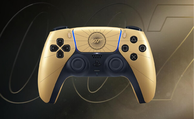 Esta nueva versión del control para PlayStation 5 seguramente te recordará a algunas ediciones especiales que Nintendo ha lanzado con The Legend of Zelda, pues destaca primordialmente que está bañado en color dorado mientras que al mismo tiempo integra relieves en negro con el logo de James Bond.