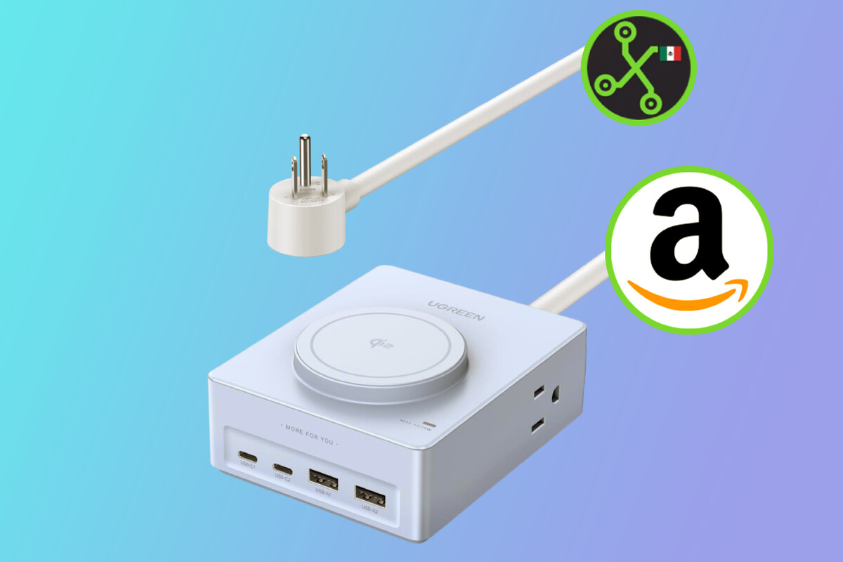 Este es uno de los accesorios más completos que te puedes imaginar, ya que sus nueve puertos se desglosan en dos accesos de USB-C, dos de USB-A, cuatro entradas AC, y la cereza del pastel: una base de carga inalámbrica. Además, algunos de estos accesos cuentan con Qi2 de 15W, que en pocas palabras permite una carga más rápida de tus dispositivos.