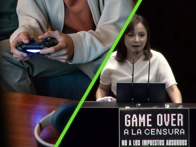 Irais Virginia Reyes, diputada de Movimiento Ciudadano, criticó durante la discusión de la reforma el impuesto a los videojuegos con un cartel que decía: “Game Over a la censura. No a los impuestos absurdos.”